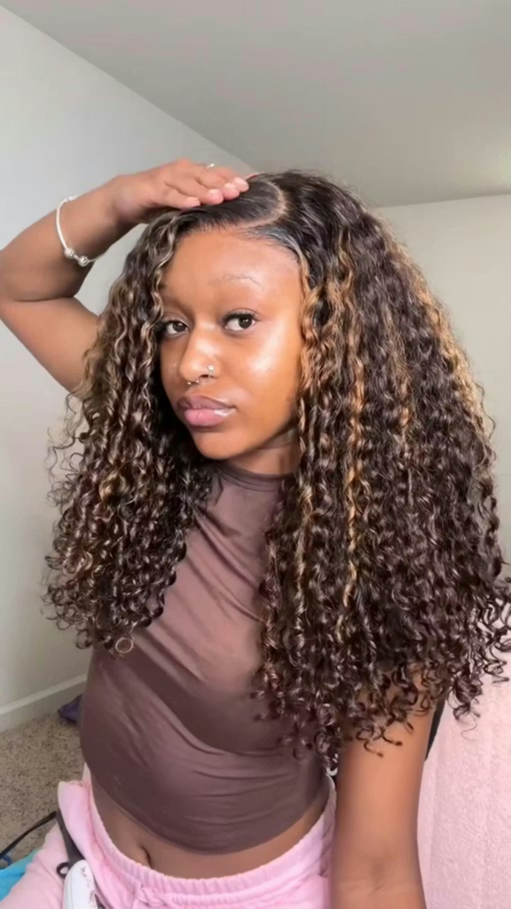 Brown Highlight Burmese Curly Glueless 13x6 Full Pull Go Lace Front Pre-Everything Human Hair Wig