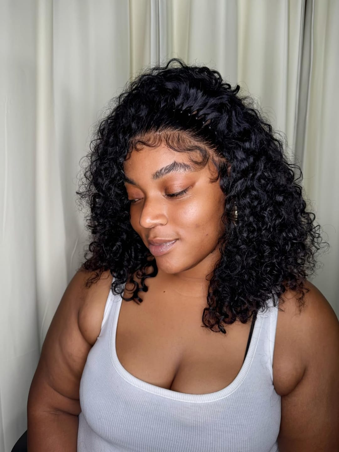When measuring curly hair, it is necessary to straighten the hair for measurement. And the smaller the curls are, the shorter the hair will appear. Also, the length and width of the face shape will affect the final look of the length.
