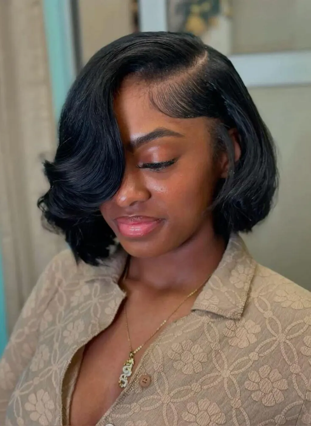 When measuring curly hair, it is necessary to straighten the hair for measurement. And the smaller the curls are, the shorter the hair will appear. Also, the length and width of the face shape will affect the final look of the length.